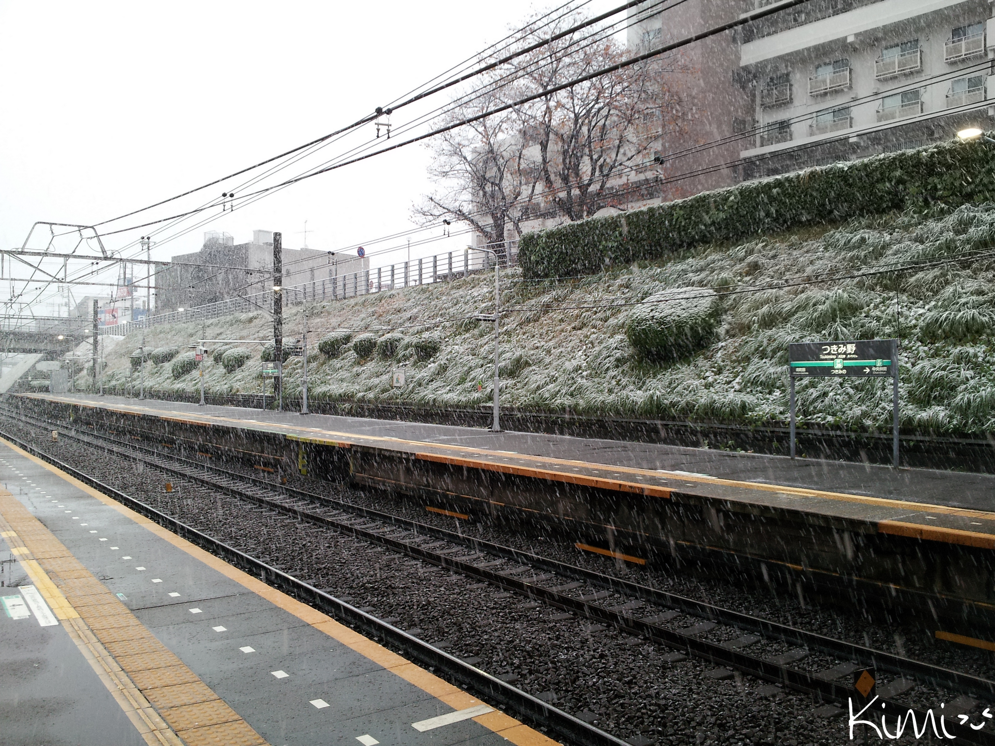 Rien de spécial mais pour la première fois depuis que je suis au Japon, je voyais… la neige ! Je voulais donc me rappeler de ce jour où il a neigé à Tokyo en novembre pour la première fois en 54 ans ! Mais ça ne sera qu’une photo de ma gare prise à l’arrache car je travaillais ce jour-là.